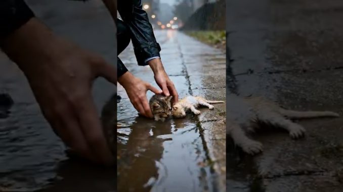 Without hesitation, the Golden Retriever sprang into action. Despite the cold rain and muddy streets, he worked carefully, guided by instinct and compassion. Moments later, through patient effort and gentle precision, he rescued not one but two soaked, shivering kittens from the dark drain. He nudged them toward his owner, who quickly wrapped his coat around the tiny, trembling bodies to keep them warm.