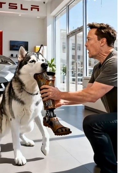 Employees were startled. Customers froze. A large husky had walked through the glass doors carrying a prosthetic leg like a message from a movie scene. And standing just a few steps away, during a visit to the facility, was Elon Musk.