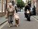 The elderly man is already gone, unaware of the scene unfolding behind him. The Golden Retriever, its mission complete, calmly walks back to its owner, wagging its tail with quiet satisfaction.