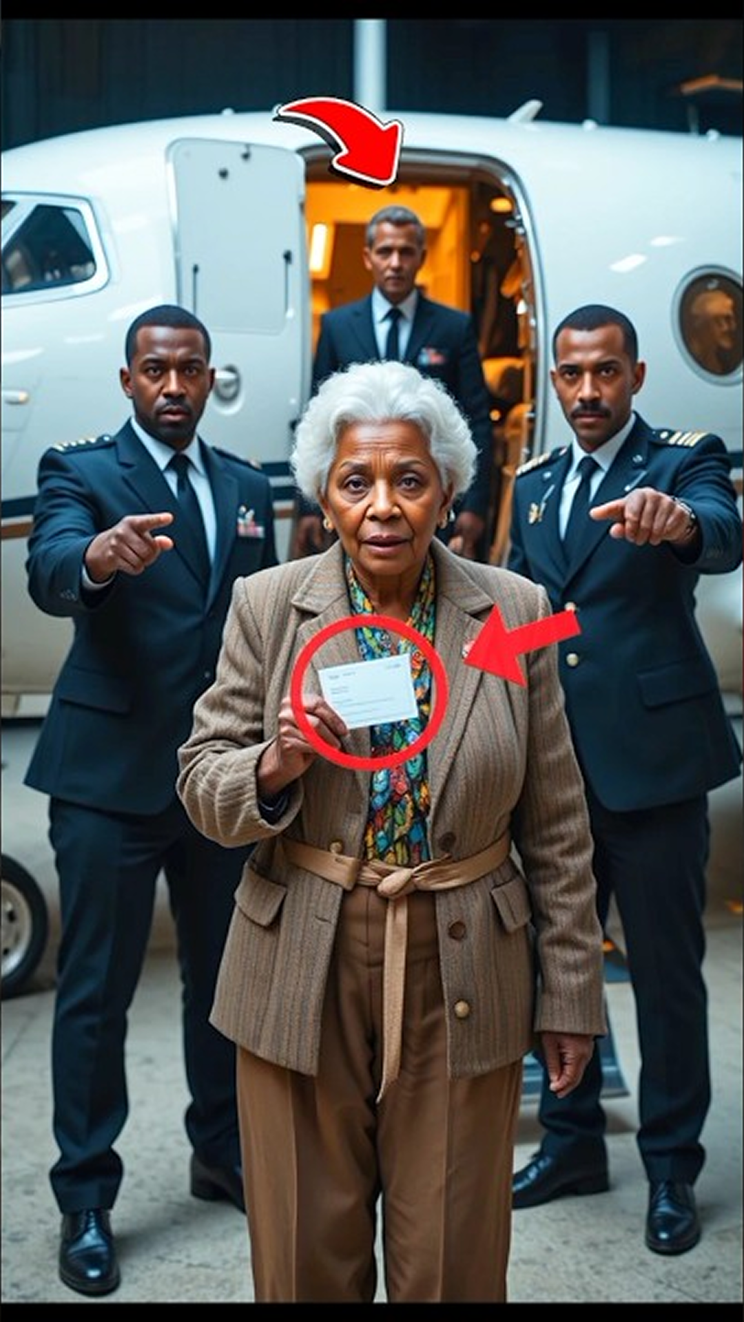 At a private corporate hangar, an elderly Black woman approached her company’s jet, dressed modestly and unassumingly. Immediately, security and onlookers assumed she didn’t belong. Whispers spread, and a guard stepped forward, dismissing her with, “Ma’am, this plane is for the CEO,” even shoving her slightly.
