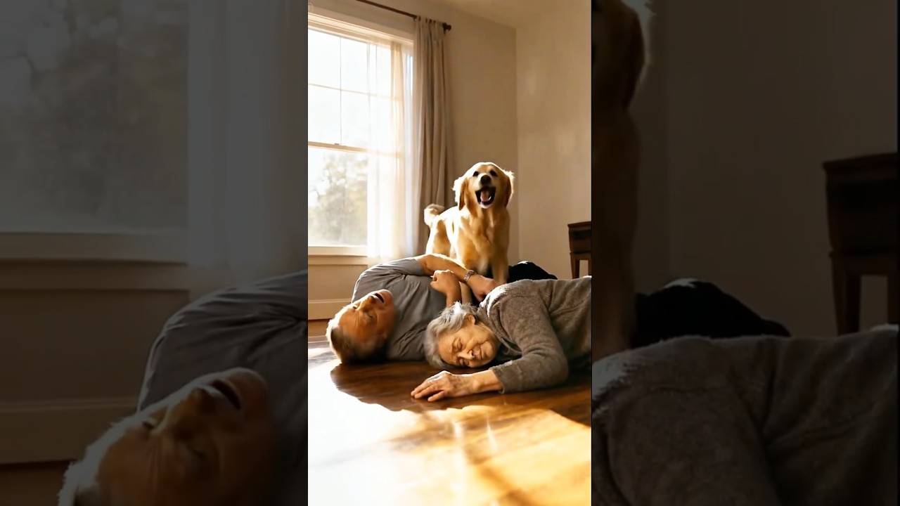 The elderly wife suddenly collapsed in the living room, falling unconscious. Instantly, their loyal Golden Retriever recognized that something was terribly wrong. Without hesitation, he sprinted upstairs, jumped onto the bed, and barked loudly, trying to wake his sleeping husband.