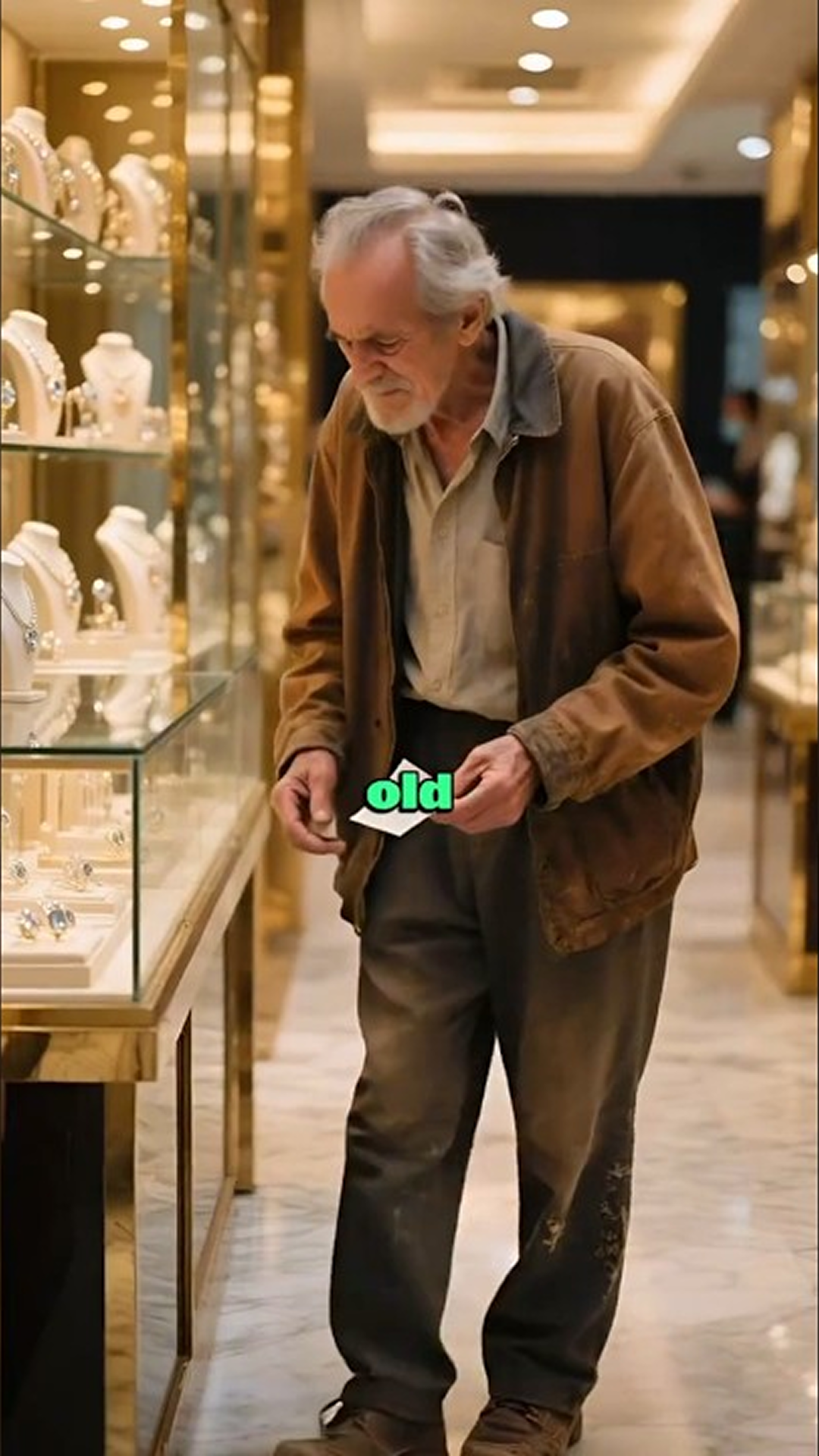 The story opens inside an elegant jewelry store known for its luxurious pieces and high-end clientele. On an ordinary afternoon, an elderly man steps inside. His clothes are simple, slightly worn, and practical—nothing that matches the glamorous surroundings. Yet his purpose is heartfelt: he wants to purchase a necklace as a graduation gift for his granddaughter.