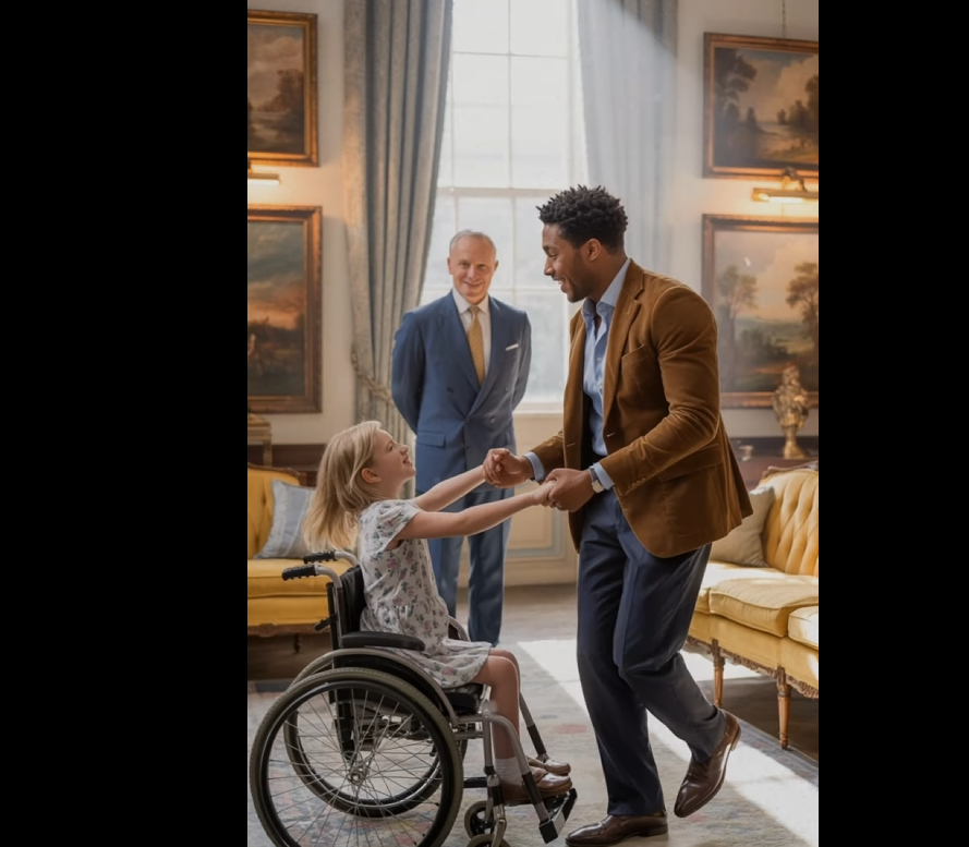 His chauffeur, Marcus, stood in the center of the polished marble floor—hands lightly supporting eight-year-old Lauren as he guided her in a slow, gentle dance. The music was soft, but Lauren’s laughter filled the entire room. For the first time in months, she wasn’t the quiet, withdrawn child who spent her days staring out the window from her wheelchair. She was smiling—truly smiling.