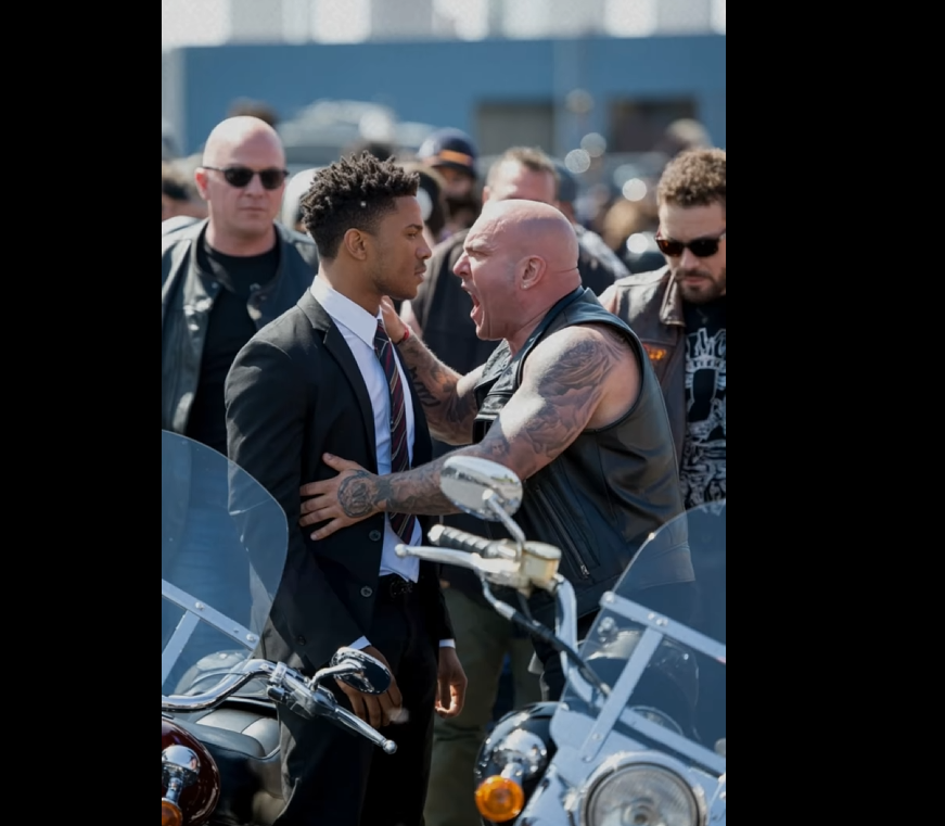 When one of the bikers reached toward him, Michael moved aside instinctively, creating space without escalating the situation. Another stepped forward aggressively, but Michael used the same disciplined technique: staying aware, staying composed, refusing to be intimidated.