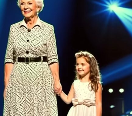 The stage lights dimmed, and the audience grew silent as two figures slowly walked into view — a grandmother and her young granddaughter, hand in hand. Both wore simple white dresses that made them look like they had stepped straight out of a storybook. There was nothing loud or flashy about their entrance, but the tenderness between them instantly captured the room.