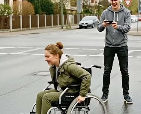 During a busy afternoon, a young woman in a wheelchair was making her way across a crosswalk. She navigated confidently, familiar with the route and the flow of the street. However, an unexpected obstacle appeared ahead of her: a water-filled pothole directly in her path. What seemed like a small inconvenience to some became a significant challenge for the wheels of her chair, making it difficult to move forward.