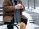 Eventually, someone placed a small piece of bread near the store’s entrance. The dog gently picked it up, holding it in his mouth with surprising care. Without wasting a moment, he turned around and began trotting home, the bread still intact between his teeth.