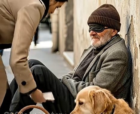 After the thief is gone, the dog, with a fresh wound near its eye, gathers the basket and, holding it gently in its mouth, returns to its owner. The final heartwarming moments show the dog placing the basket of retrieved money before the blind man and then receiving a tender hug and kiss from its grateful and clearly emotional owner, highlighting the profound bond between them.