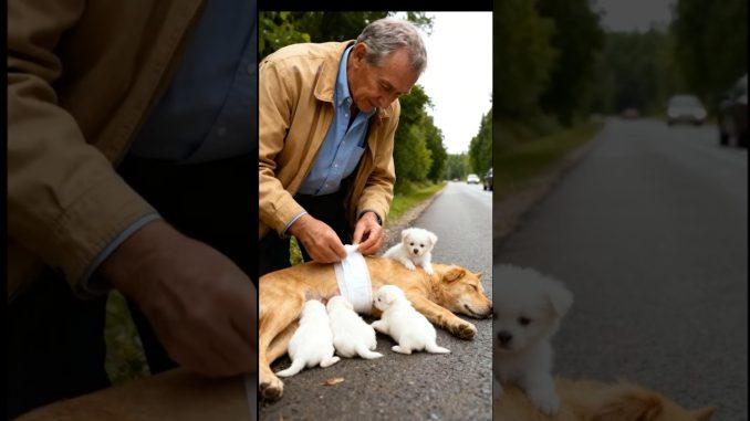 A heartwarming act of kindness unfolded on a calm, tree-lined roadside when a passerby stepped in to help an injured mother dog and her small puppies. The touching rescue, featured in the video “A Kind Man Rescues Injured Street Dog and Her Puppies,” quickly resonated with viewers around the world for its message of empathy and responsibility.