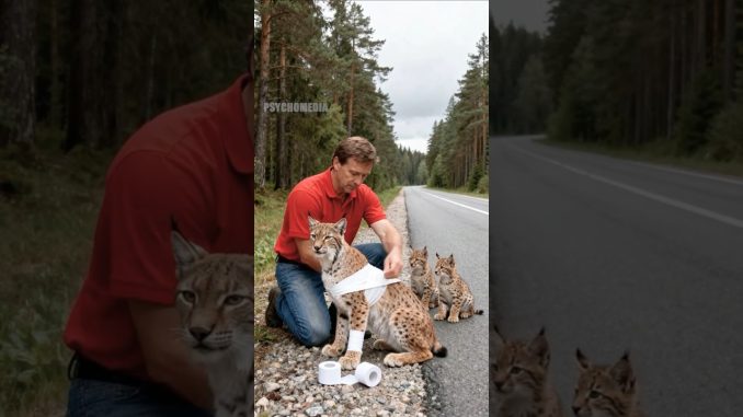 On a quiet forest road, an unexpected act of compassion became the difference between danger and hope for a mother lynx and her two young cubs. The video titled “A Mother Lynx and Her Cubs Saved by a Stranger” captures a moment that highlights how human kindness can make a meaningful impact on wildlife in need.