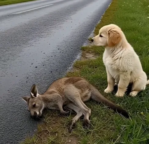 Golden Retriever Pup Helps Rescue a Baby Kangaroo in a Heartwarming Outback Save
